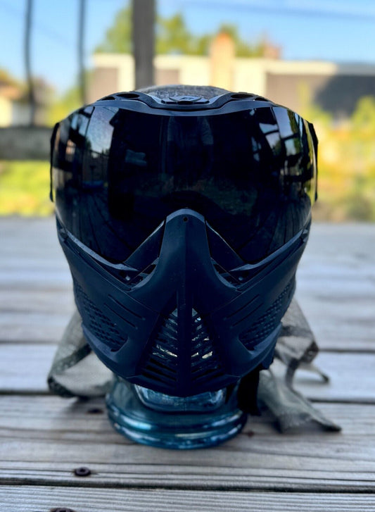 All Black Push Unite Paintball Mask w/ Sandana Flying Skull Strap